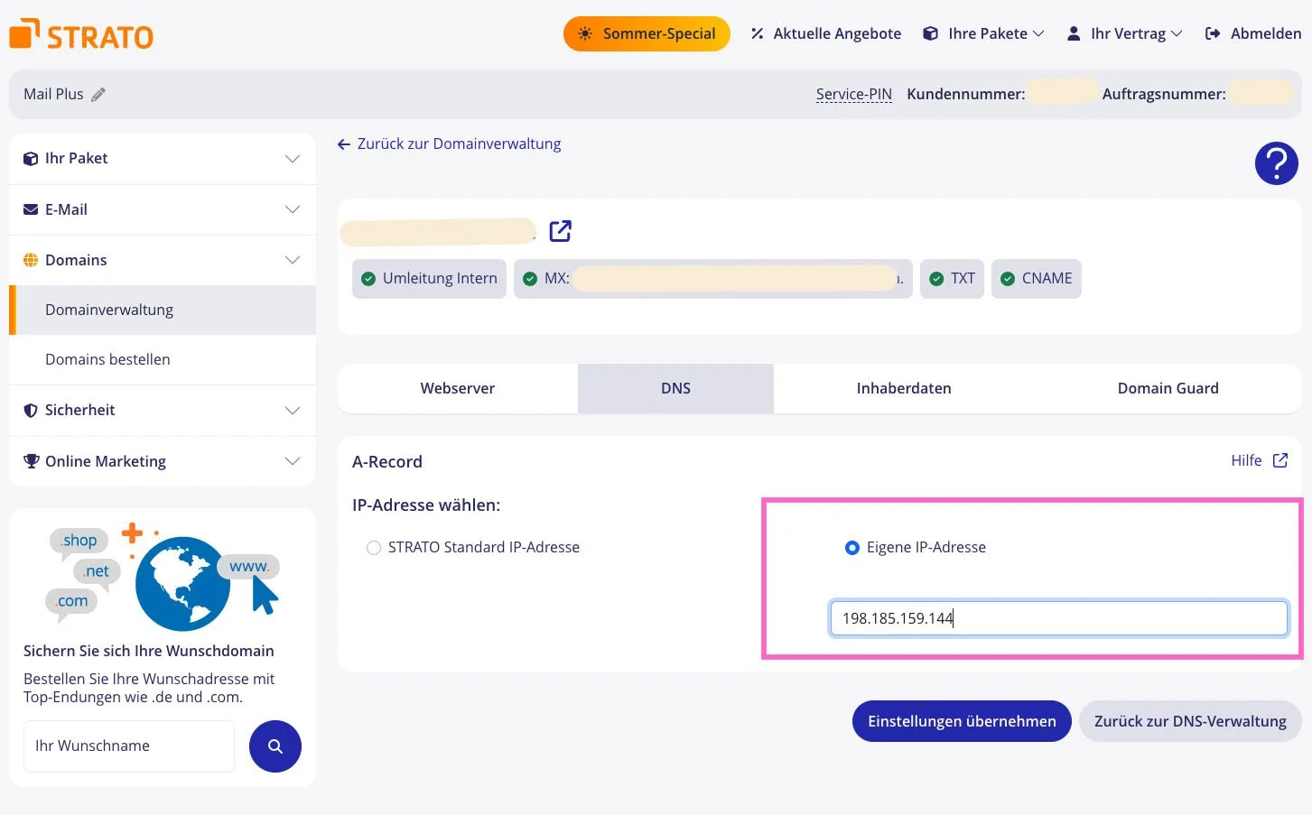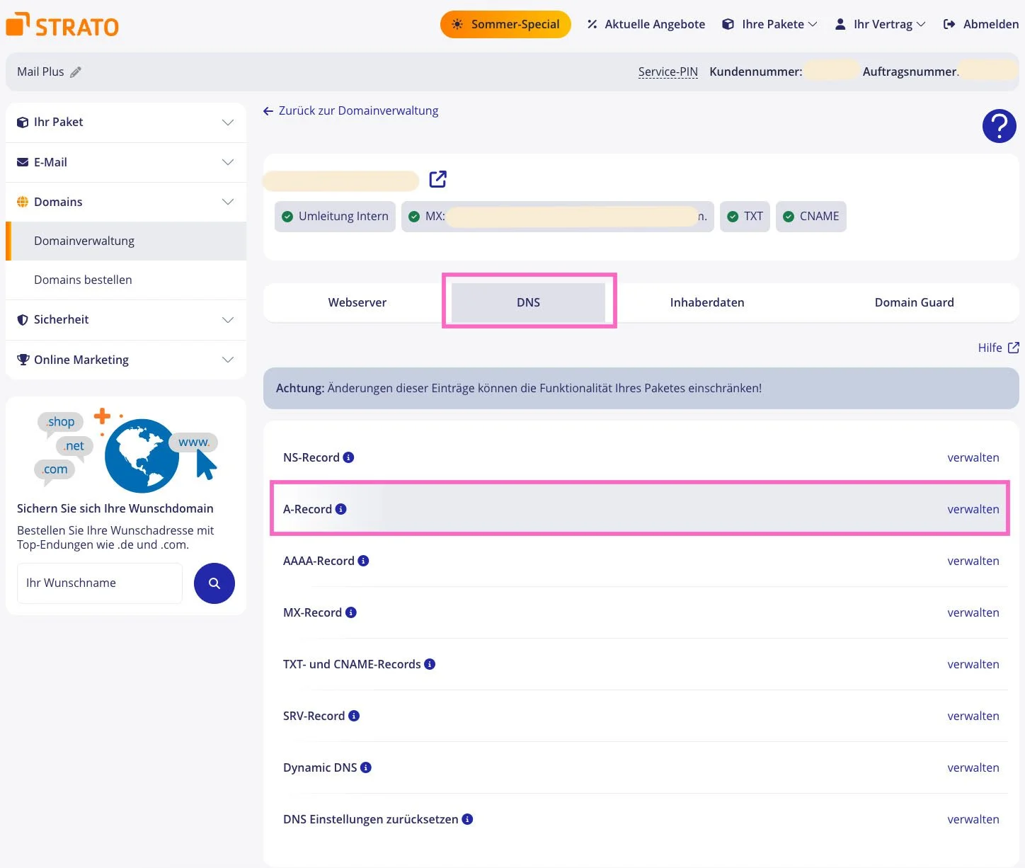 Schritt 2: Bei Strato einloggen und DNS-Einstellungen anpassen