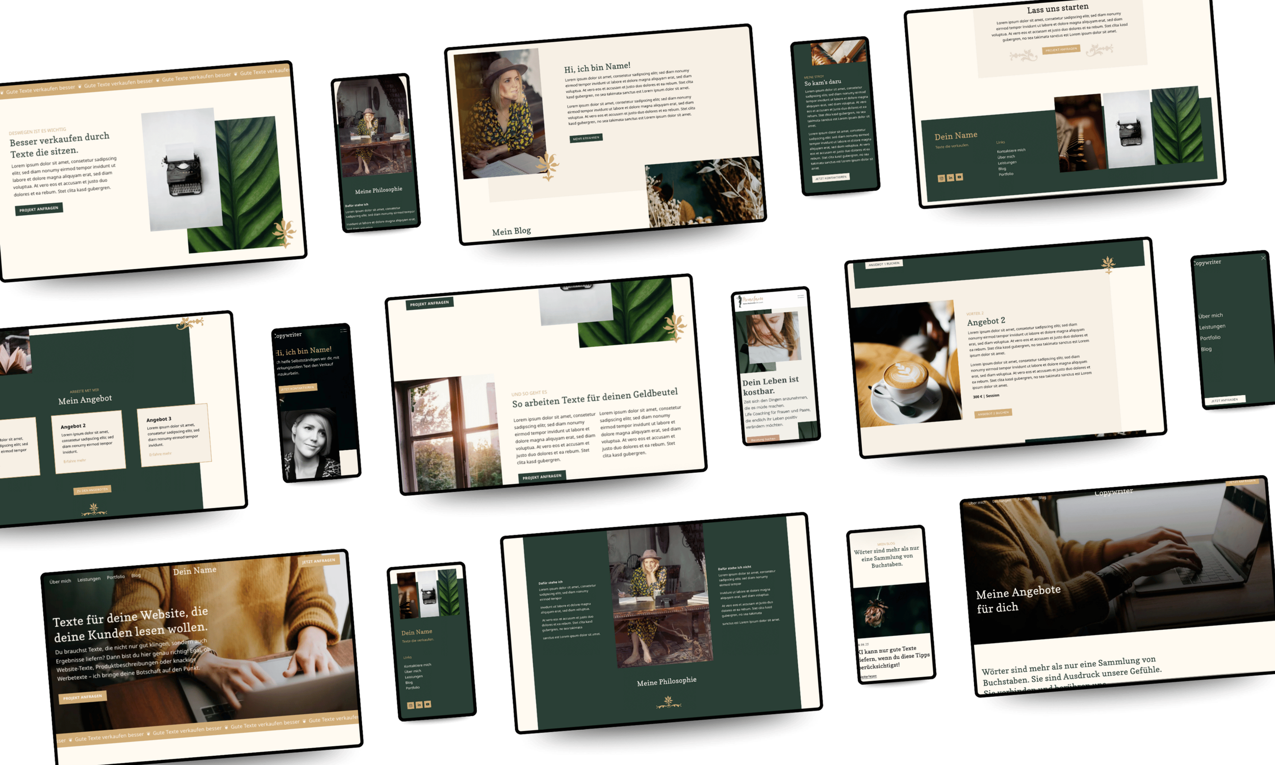 Ob kreative Unternehmerin oder Unternehmer wie Künstlerin, Designer, Autor oder Fotografin, ob Influencerin oder Bloggerin oder ob du ein servicebasiertes Business führst wie Online-Marketing, virtuelle Assistenz, Therapie oder Wellness – du findest ein Template, das perfekt zu deinem Business passt oder nur ein paar kleine Anpassungen braucht, um ideal zu funktionieren.